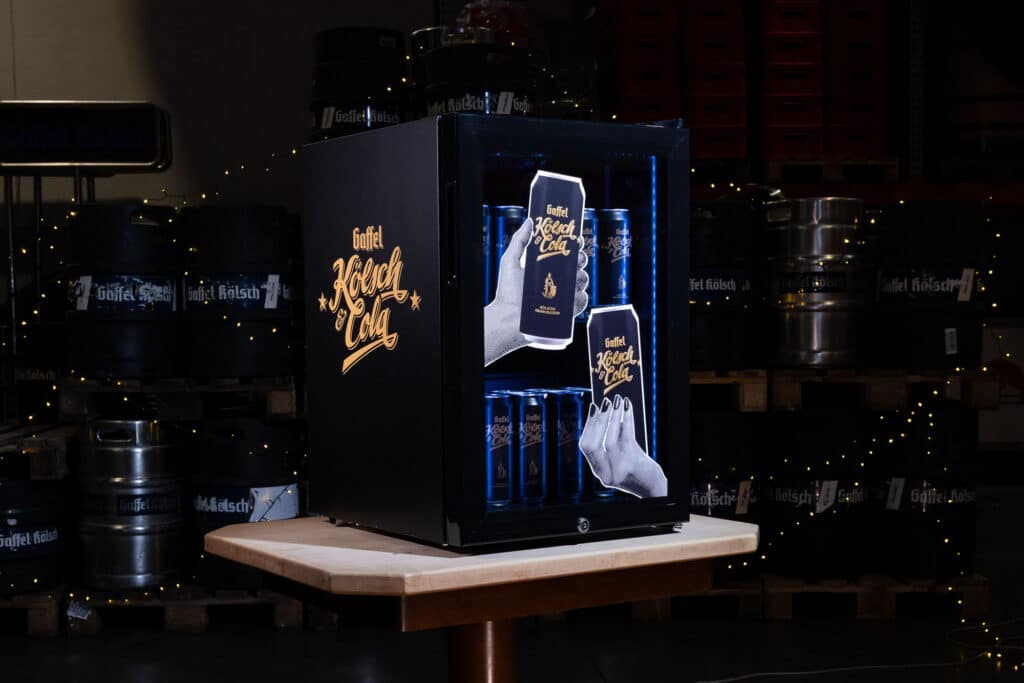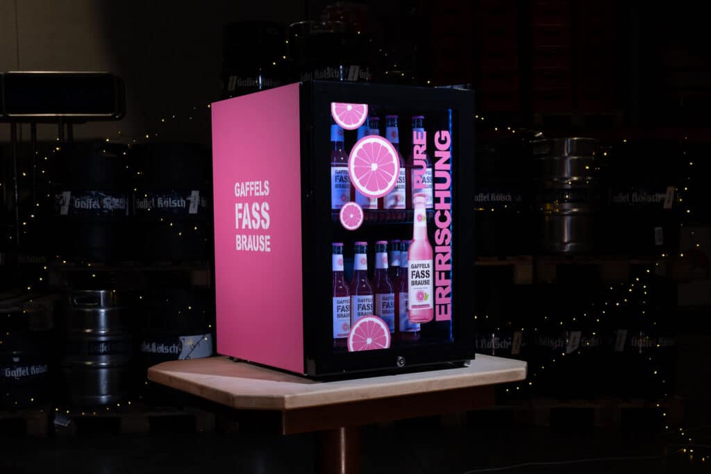 Am 1. Advent starteten wir mit einem Kühlschrank im Gaffel Kölsch Look. In den nächsten Wochen folgen drei weitere Unikate. Ein Kühlschrank im Kölsch und Cola Design, einer im Fassbrause Pink Grapefruit Style und als besonderes Highlight ein Gaffel x 1. FC Köln Kühlschrank.